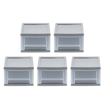 Iris Stackable Plastic Storage Bin with Drawer, Gray, 5/Pack (500162)