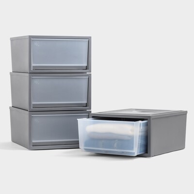 - Stackable storage bin with drawer system helps organizes any room in the house