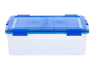 Order Iris WeatherPro 40 Qt. Latch Lid Storage Bin, Clear/Blue (500202) today at Quill.com and get fast shipping. Stack coupons to get free gifts & extra discounts!