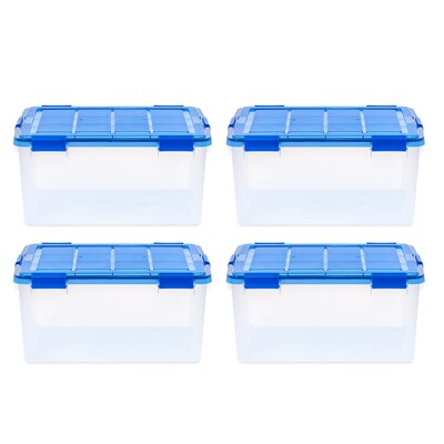 Iris WeatherPro 60 Quart Storage Bin with Latching Lid, Plastic, Clear, 4/Pack (500135)
