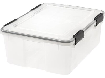 The Iris WeatherPro plastic storage box has a heavy-duty seal in the lid to preserve and protect contents. With the multiple latches that lock strongly and securely onto the durable lid, the bin creates a vacuum-like environment inside, blocking out moisture, dust, etc. Perfect to store clothes, documents, food, hunting gear, camping gear, tools, and other large items.