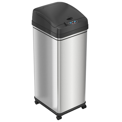 iTouchless 13 Gallon Rolling Sensor Kitchen Trash Can with Wheels, Silver