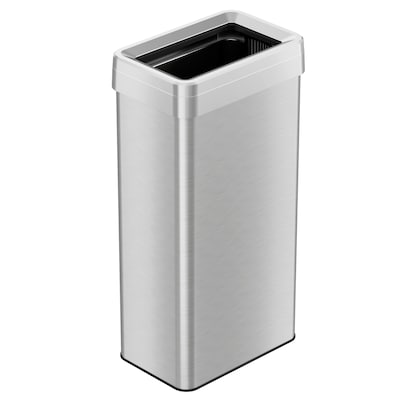 Upgrade your waste disposal with the iTouchless 21 Gallon Rectangular Open Top Kitchen Trash Can, designed for efficiency and style. The wide opening allows for quick and clean disposals, making it perfect for busy kitchens. With an extra-large 21-gallon capacity, this can holds a significant amount of trash, reducing the need for frequent emptying. Equipped with dual AbsorbX odor filters, it effectively traps and neutralizes unpleasant smells, ensuring your space remains fresh. Its fingerprint-proof stainless steel body, paired with a slim rectangular shape, fits perfectly against walls, maximizing your floor space while maintaining an elegant appearance.