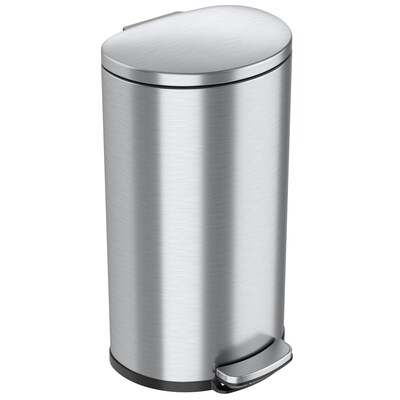 iTouchless SoftStep Semi-Round Stainless Steel Step Trash Can with Hinged Lid, 7.93 Gallon (IP08DSS)
