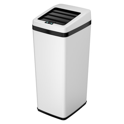 iTouchless Stainless Steel Sliding Lid Sensor Trash Can with AbsorbX Odor Control System, 14 Gal., White (IT14SW)