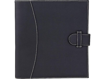 Organize documents and accessories with this black executive binder/organizer. The faux leather and white stitching give this binder a sophisticated look and feel, while the 1-inch D rings let pages lie flat and hold up to 250 sheets comfortably. This It's Academic executive binder/organizer includes a business card holder, and the adjustable belt-and-loop closure holds crucial documents securely inside.
