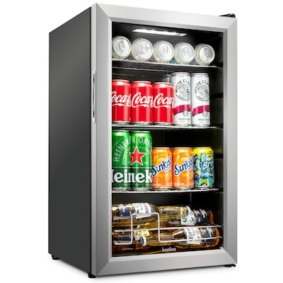 Ivation Freestanding Mini Fridge w/ Glass Door, 101 Can Capacity, Stainless Steel (IVABC1010SS)