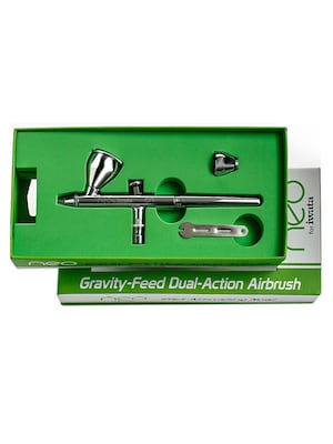 - NEO Gravity-Feed is a dual-action airbrush and features a unique 0.35-mm needle and nozzle combination for finer detail spraying and medium sized spray patterns