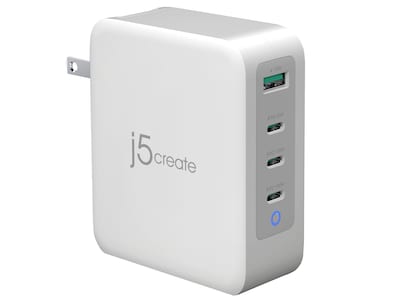 j5create 130W GaN USB-C 4-Port Charger for Laptops, Tablets, and Mobile Devices, White (JUP43130)