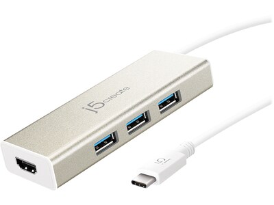 Play low-resolution images on 4K screens through the HDMI port on this USB hub. The USB 3.0 connectors provide transfer rates of up to 10GB/s and fast charging for smartphones and are compatible with older devices. This j5create 3-port USB hub features an aluminum exterior for safe transportation, and plug-and-play functionality requires no drivers or software for instant use.