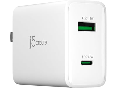 j5create 67W GaN USB-C 2-Port Charger for Laptops, Tablets and Mobile Devices, White (JUP2367)