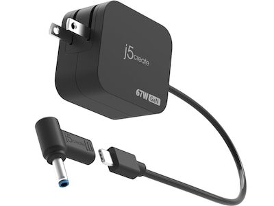 Perfect for a variety of devices, the j5create USB Type-C charger can provide up to 67W of power and comes equipped with a detachable 4.5mm DC converter, allowing you to change the power connector if needed. Built with an advanced power integration GaN power chip, this high-speed, high-efficiency compact charger charges faster than other standard power supplies. Features a foldable plug for maximum portability and can be easily packed for traveling or business trips.