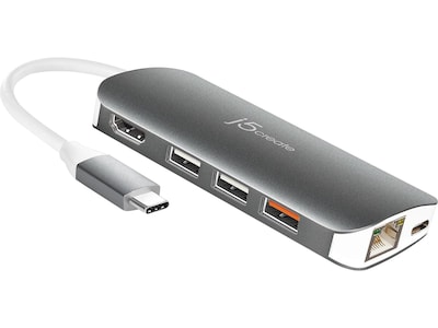 Transfer data at up to 5GB/s with this multiport adapter. The HDMI output supports 4K resolution, and the microSD slot offers external storage. This j5create USB type-C multiport adapter features a Gigabit Ethernet port for prompt network connectivity.