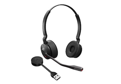 The Jabra Engage 65 SE Stereo Wireless Headset (9659-553-125-1) is a high-performance, professional-grade headset designed for office and call center use. It features a lightweight, comfortable binaural design with leatherette ear cushions for all-day wear. Leveraging DECT wireless technology, this headset offers a remarkable range of up to 150 meters (490 feet), ensuring seamless mobility without compromising audio quality. The noise-canceling microphone, enhanced with advanced digital signal processing (DSP), provides crystal-clear communication by reducing background noise. This headset is compatible with desk phones and softphones/computers and is certified for Microsoft Teams and leading Unified Communications (UC) platforms. With a battery life of up to 13 hours of talk time and a quick-charging base station, it is ideal for busy professionals. Built with high-quality materials and advanced security standards, the Jabra Engage 65 SE delivers exceptional performance, reliability, and comfort in demanding work environments.