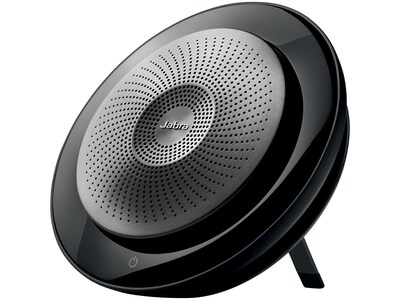 Get clear, high-quality sound with this speaker system. With an omnidirectional microphone and high-definition voice, this system offers 360-degree coverage, so it's a good choice for meetings in conference rooms. The portable, lightweight design makes this speaker system an ideal companion when traveling to meetings and other events, while the included protective travel pouch keeps it safe from dings, dirt, and other damage. This Jabra Speak wireless rechargeable speaker system is a great option for listening to music, taking calls, and other multimedia, and it provides up to 15 hours of battery life, making it a solid choice for lengthy office events and other tasks.