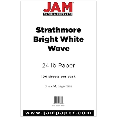 Order JAM Paper® Strathmore Legal Paper - 8.5" x 14" - 24lb Bright White Wove - 100/pack today at Quill.com and get fast shipping. Stack coupons to get free gifts & extra discounts!