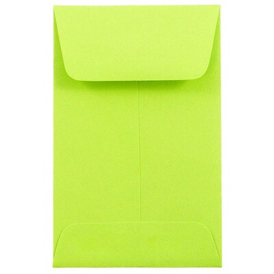 JAM Paper® Lime Green #1 Coin Envelopes measure 2.25 x 3.5 inches in size and are made out of smooth, high quality, 24lb paper. These small envelopes are sold in a pack containing 25 envelopes. Each one has a straight flap and a reliable gum closure to keep the contents placed within secure. Though they are small, these envelopes cannot go unnoticed! They feature a bright and eye-catching zesty lime green color that stands out in any setting! Use these lime green coin envelopes to enclose and organize small items and trinkets, send or store receipts and invoices, give away cash or gift cards, and more!