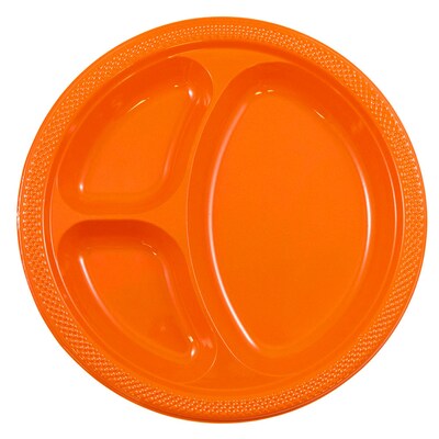 JAM Paper 10 1/4" 3-Compartment Plastic Plates, Orange, 20 Plates/Pack (10255CPOR)