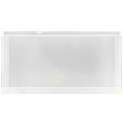 JAM Paper® Clear #10 Plastic Envelopes with Zip Closures are 5 x 10 inches in size and have a 1 inch expansion. Made of sturdy and slightly pliable plastic, these envelopes are great for storing receipts, coupons, banks slips, folded documents, pens, and more! This pack contains 12 envelopes for multiple uses! The zip closures of these envelopes close and open quickly and reliably. Use them to store small papers in drawers or on shelves, or put them in your bag or briefcase to keep items safe on the go. Their clear quality makes them a good fit for any office or workspace and allows you to see stored items from the outside.
