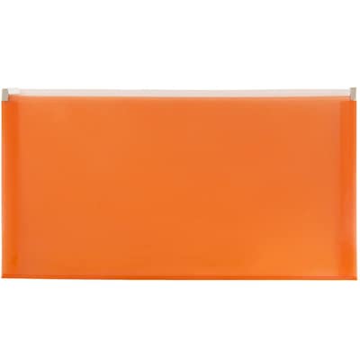 JAM Paper® Orange #10 Plastic Envelopes with Zip Closures are 5 x 10 inches in size and have a 1 inch expansion. Made of durable and slightly pliable plastic, these envelopes are great for storing receipts, coupons, note cards, mementos, folded documents, pens, pencils, and more! This pack contains 12 envelopes for multiple uses! The zip closures of these envelopes allow for fast and easy opening and closing. Use them to store small papers in drawers or on shelves, or put them in your bag or glove compartment to keep items safe in transport. Their semi-transparent pumpkin orange color is sure to wake you up at the office or at your workplace.