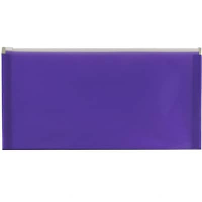 JAM Paper® Purple #10 Plastic Envelopes with Zip Closures are 5 x 10 inches in size and have a 1 inch expansion. Made of durable and slightly bendable plastic, these envelopes are great for storing receipts, coupons, note cards, mementos, folded documents, pens, pencils, and more! This pack contains 12 envelopes for multiple uses! The zip closures of these envelopes allow for quick and reliable opening and closing. Use them to store small papers in drawers or on shelves, or put them in your bag or glove compartment to keep items safe in transport. Their semi-transparent, bold purple color is sure to help your stored items stand out in the office.