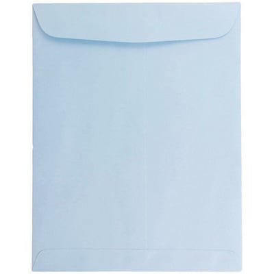 JAM Paper® 10" x 13" Baby blue open end envelope is constructed from 28 lbs sturdy paper and comes with square gummed flap being ideal for greeting cards, invitations, weddings or any announcement, sold as 10 per pack.
