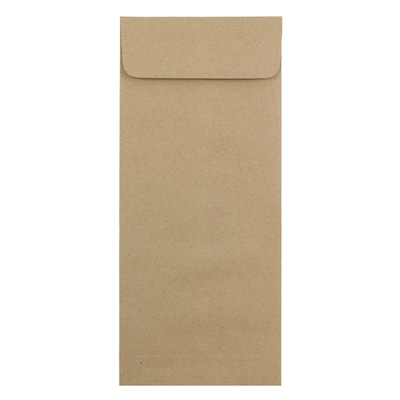 JAM Paper® Brown Kraft Paper Bag Recycled #14 Open End Policy Envelopes measure 5 x 11.5 inches and are made out of 100% recycled eco-friendly paper! These slightly textured envelopes feature straight flap and secure gum closures! With a vertical design and openings on the short end, these policy envelopes are great for cash, checks, receipts, sales slips, tickets, boarding passes, policies, lists, and more! These envelopes are sold in a pack containing 50 envelopes! Use them for home, office, business, or fundraising needs! These envelopes have a natural brown coloring that gives them a classic and vintage look.
