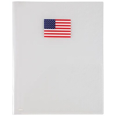 JAM Paper 2-Pocket Plastic Presentation Folders, 8" x 11.5" Clear w/ American Flag, 12/Pack (9439026A)