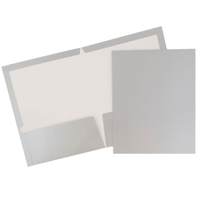 JAM Paper 2-Pocket Presentation Folders, Silver Glossy, 100/Box (385GSI)