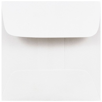 JAM Paper® White Square Mini Envelopes cater to small mailings. Insert wedding save the dates, thank you cards, announcements, greetings, memos, and more into these 2 3/8" x 2 3/8" envelopes. Because of their small size, place into bigger envelopes in order to mail through the post office. These envelopes are also ideal for storing business cards on-the-go, crafting, scrapbooking, and storing small items. However you choose to use, expect to impress with high quality presentation and performance. This pack includes 50 white envelopes made from 24 lb. paper. Each envelope has a booklet opening, round flap, gum closure, and smooth finish.