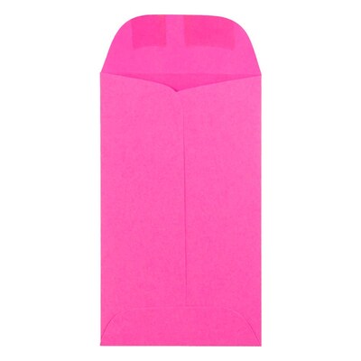 JAM Paper® Bright Hue Ultra Fuchsia Pink #3 Coin Envelopes measure 2.5 x 4.25 inches in size and feature a bright, fluorescent fuchsia pink color! There is a total of 50 envelopes in this pack. Each one is made out of smooth, high quality, 24lb paper. These coin envelopes open on the shorter side and have straight flaps with reliable gum closures to keep the contents that you put inside of them secure as they are being passed around through the office or sent through the mail. These small envelopes are ideal for receipts, gift cards, memos, brief notes, and small pieces that need to be kept in one place. Use these envelopes for mailing purposes or to keep items organized and easy to find in your home or office!