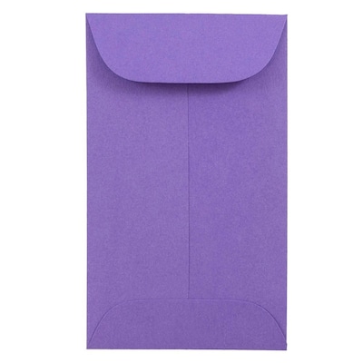 JAM Paper® Bright Hue Violet Purple #3 Coin Envelopes measure 2.5 x 4.25 inches in size and are made out of smooth, high quality, 30% recycled 24 lb paper! This pack contains an even total of 25 envelopes. Each one features a straight flap and a reliable gum closure to keep the contents placed within secure while they are being transported from place to place. Despite their small size, these envelopes will stand out in any setting thanks to their bright, fashionable, and bold violet purple color! Use these purple coin envelopes for office and home organizational purposes or for mailing small items with a pop of color!
