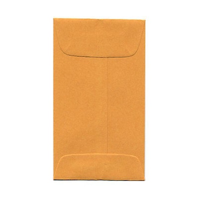 JAM Paper #6 Kraft Coin Envelope, 3 3/8" x 6", Brown Kraft, 1000/Carton (01623992B)