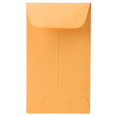 Keep small items in one place with JAM Paper #3 Coin Business Colored Envelopes. These 2 1/2" x 4 1/4" Brown Kraft coin envelopes are made from high quality, sturdy 24 lb. paper and feature a protective moisture-activated gum closure to keep contents sealed. These classic Brown Kraft envelopes are ideal for organizing small items such as loose change, shirt buttons, rings, earrings, paperclips, and more! They can also be used to craft, scrapbook, hold gift cards and create party favors. This pack includes 100 envelopes. Each feature an open end opening, straight flap and smooth finish. These envelopes cannot be mailed through USPS due to their size. Size: 2.5in x 4.25in | Color: Brown Kraft | Quantity: 100/pack