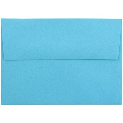 JAM Paper Brite Hue Blue Recycled 4bar A1 Invitation Envelopes measure 3 5/8 x 5 1/8 inches in size, making them ideal for A1 sized note cards response cards, invitations, and stationery. This pack contains a total of 25 envelopes. Each one features a straight flap with a dependable gum closure to keep enclosed items secure in transport. Made out of smooth, 30% recycled, 24lb paper, these reliable and earth-friendly envelopes are great for special occasions and business mailings. Their vibrant, stunning, bright blue color is certain to get attention and to brighten up the day of any recipient! Use them for wedding response cards, baby shower invitations, and more!