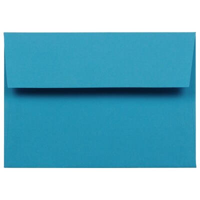 JAM Paper® Brite Hue Blue Recycled 4bar A1 Invitation Envelopes measure 3 5/8 x 5 1/8 inches in size, making them ideal for A1 sized note cards response cards, invitations, and stationery. This pack contains a total of 100 envelopes. Each one features a straight flap with a dependable gum closure to keep enclosed items secure in transport. Made out of smooth, 30% recycled, 24lb paper, these reliable and earth-friendly envelopes are great for special occasions and business mailings. Their vibrant, stunning, bright blue color is certain to get attention and to brighten up the day of any recipient! Use them for wedding response cards, baby shower invitations, and more! Size: 3 5/8in x 5 1.8in | Color: Brite Hue Blue Recycled | Quantity: 100
