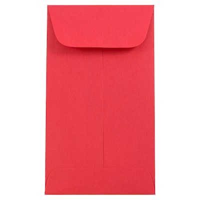 JAM Paper® Brite Hue Red #6 Coin Envelopes measure 3 3/8 x 6 inches in size and feature an eye-catching and bold red color! These envelopes are made out of high quality, smooth, 30% recycled, 24lb paper. This pack contains a total of 25 envelopes! Each one has a straight flap and a reliable gum closure. The red color of these envelopes makes them fantastic for mailing and organizational purposes during the holiday season or for Valentine's Day! Their size makes them optimal for mailing out small papers, gift cards, and other items. They can also be used to keep small pieces, parts, and trinkets organized and easy to find in your home or office.
