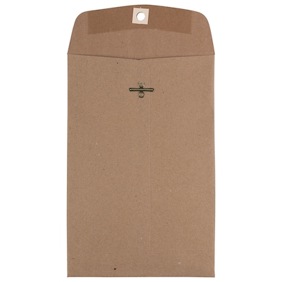 JAM Paper® 6" x 9" Brown craft paper bag envelope is made from 100 percent post consumer paper and has a convenient metal clasp closure offering a rustic and natural feel, sold as 10 per pack.