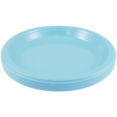 Cleaning up got you feeling blue? Cheer up because JAM Paper Sea Blue Small Round Plastic Plates let you have all the fun without the mess! After a fun party, just collect all the plates and throw them in the trash or in the recycle bin. Voila! Clean up is complete! These plates measure 7 inches in diameter and are sold in a pack of 80 plates. Paper plates are flimsy and fold under the pressure. These durable plastic plates can withstand the heaviest and sauciest of meals. So load up on all the fixings without worrying about your plate dripping or collapsing! If you don't want to throw these plates out because they're just too pretty, you're in luck. Just rinse and these pretty blue plates are like new!