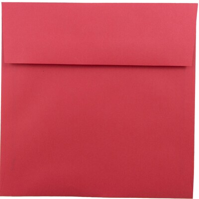 JAM Paper® Brite Hue Christmas Red 8.5 x 8.5 Square Invitation Envelopes are made from high quality, smooth, 30% recycled, 24lb paper. Each of these envelopes measures 8.5 inches on each side and features a perfectly square shape. To keep the items that you place inside of them secure, these envelopes have straight flaps with reliable gum closures. This pack contains a total of 25 envelopes. Their bright red color makes them an ideal selection for the holiday season! Use them to send out the invitations to that next upcoming Christmas party or your winter wedding. Make sure that your Christmas cards get noticed this year by mailing them in these unique envelopes!
