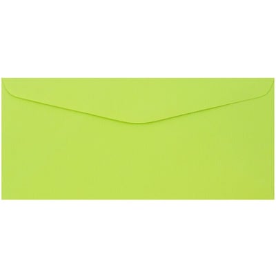 Bring color to your most important mailings with JAM Paper #9 Business Colored Envelopes. Our Ultra Lime Green envelopes add a layer of vibrancy and fun that are sure to attract recipients' attention immediately! These colorful 3 7/8" x 8 7/8" envelopes are made from high quality 28 lb. paper, feature a moisture-activated gum closure and have a smooth finish. They are great for sending business correspondence and memos, notices, announcements, invoices, checks, statements, cash, and much more! From professional to personal needs, our envelopes can be used to deliver all your mailings in style. This pack contains 100 envelopes. Each envelope has a booklet opening, straight flap, gum closure and smooth finish. Size: 3.875in x 8.875in | Color: Ultra Lime Green | Quantity: 100/pack
