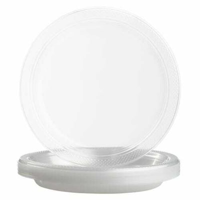 A Value That's CLEAR As Day, After you have slaved over the stove for hours, its only right that your food is the main focus of the party. JAM Paper; Clear Medium Round Plastic Plates let your food stand out without the distraction of a brightly colored plate. These plastic plates are durable and sturdy enough for appetizers, salads, and even main courses. Because of the strength and quality of these plates, you don't have to worry about sauces and liquid dripping onto the floor. If you want to reuse these plates, don't fret because you can hand wash them to use over and over again. However, we understand if you're tired after that awesome party. That is why we made these plates recyclable, so you can just relax and throw them out. Plates measure 9 inches in diameter and are sold in a pack of 20.Details, Size: 9 inches (Medium) Color: Clear Quantity: 20 Plates