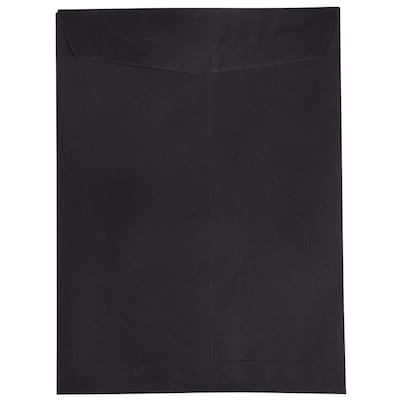 Bold Envelopes For A Powerful StatementGet the best open end envelopes made from the highest quality 24 lb. cardstock. JAM Paper® Smooth Black Catalog Envelopes measure a professional 9 x 12 inches and have a strong, sturdy smooth finish. Every time you hold one of these fantastic mailers you will know your documents are secure within this thick, solid envelope. The privacy and security of your invoices, checks, cash, bills, and other important documents is extremely important. Our catalog envelopes have a straight flap and a gummed adhesive closure to make sure your documents are secure inside!DetailsSize: 9 x 12 inchesColor: Smooth BlackPaper Weight: 24 poundsQuantity: 50 Envelopes
