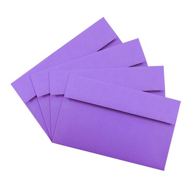 JAM Paper® Brite Hue Violet Recycled A10 Envelopes measure 6 x 9.5 inches in size and are made out of smooth, 24lb, high quality 30% recycled paper. This pack contains a total of 25 envelopes. Each one has a straight flap and a reliable gum closure to keep the items inside secure as they are transported through the mail. If you're looking for envelopes that will add a stylish touch of fun to your mailings, you have come to the right place. These envelopes feature a bright, bold, and beautiful shade of violet purple! Use these unique envelopes to send invitations, personal letters, greeting cards, and more through the mail!