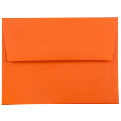JAM Paper® A2 Size brite hue orange recycled paper invitation envelope in a pack of 25 has dimension of 4 3/8" x 5 3/4" and is perfect for greeting cards, invitations or other announcements.