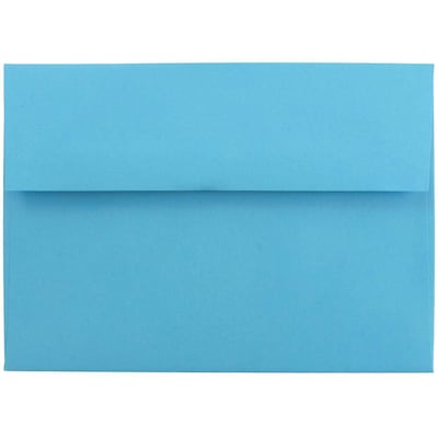 JAM Paper Brite Hue Blue Recycled A7 Invitation Envelopes measure 5.25 x 7.25 inches in size, making them ideal for standard sized 5 x 7 invitations and greeting cards! These envelopes feature a bright, vibrant, eye-catching color that will give invited guests a bright and cheerful impression of any occasion! Each one is made out of smooth, 30% recycled, 24lb paper and features a straight flap with a reliable gum closure. This pack contains a total of 250 envelopes. Use these envelopes to mail invitations to weddings graduation parties, bridal or baby showers, reunions, going-away parties, engagement parties, and more!