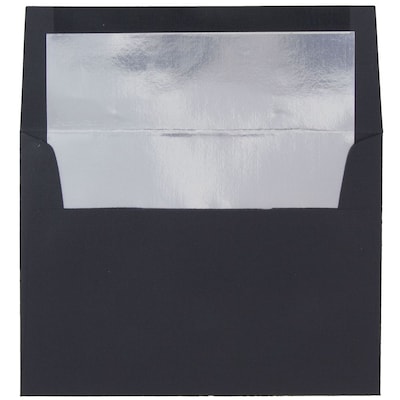 Why settle for boring, drab envelopes when you can send your cards and letters with elegance and flair? Black envelopes never fail to bring a touch of class to any scenario, while the shimmering silver foil lining gives new meaning to the phrase "special delivery." Our JAM Paper® brand envelopes come in a wide variety of colors, so you can always find one to fit the mood. The A7 (5 1/4 in x 7 1/4 in) envelopes fit most cards and specially-sized documents, and always make your recipient feel like a shining star. Send your messages with panache using this pack of 50 black envelopes!