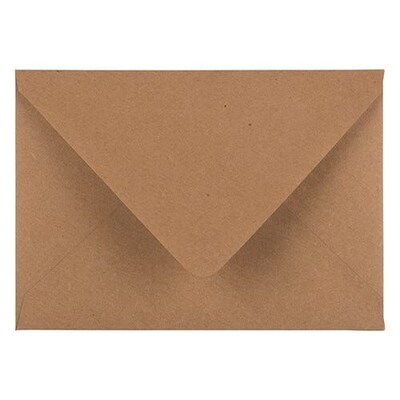 JAM Paper A7 Brown Kraft Recycled Invitation Envelopes with V-Flap can be a timeless new addition to your stationery collection! They have a natural hue that make them perfect to use for any occasion. Whether you need to mail birthday invitations, greeting cards, letters or promotional materials, these 5 1/4" x 7 1/4" envelopes are guaranteed to impress. They're 100% recycled, which is always a bonus! And they're durably-made from high quality 28lb paper, making them thick and capable of containing content without ripping easily at the seams. Each envelope features a booklet opening, smooth texture and V-flap with gum closure, which securely seals. This pack contains 100 envelopes. Size: 5.25in x 7.25in| Color: Brown Kraft| Quantity: 100