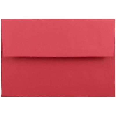 JAM Paper® Brite Hue Christmas Red Recycled A8 Invitation Envelopes measure 5 1/2 x 8 1/8 inches in size and are made out of smooth, high quality, 30% recycled, 24lb paper. This pack contains a total of 25 envelopes. Each one has a straight flap and a reliable gum closure to keep the items placed within secure as they travel through the mail. The bright and festive red color of these envelopes makes them ideal for the holiday season! Use them to send Christmas cards or invitations to this year's annual holiday party! These red envelopes are great for any personal or business mailing that need s to be seen by recipients.