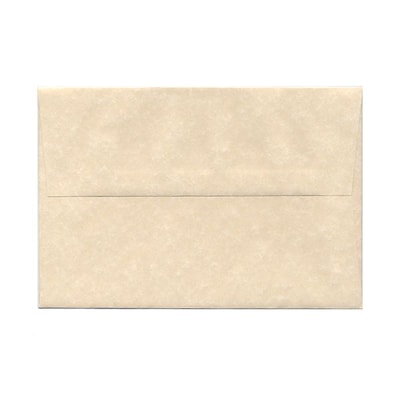 JAM Paper® Parchment Natural Recycled A8 Invitation Envelopes measure 5 1/2 x 8 1/8 inches in size and are made out of smooth, 30% recycled, 24lb paper. This pack contains a total of 25 envelopes. Each envelope in this set features a light brown natural parchment color with a marbled appearance. These envelopes have straight flaps and reliable gum closures to keep the items placed inside of them secure as they travel though the mail. Certain to give any items mailed in them a unique and elegant appearance, these envelopes are great for A8 sized invitations, greeting cards, Thank You cards, and much more!